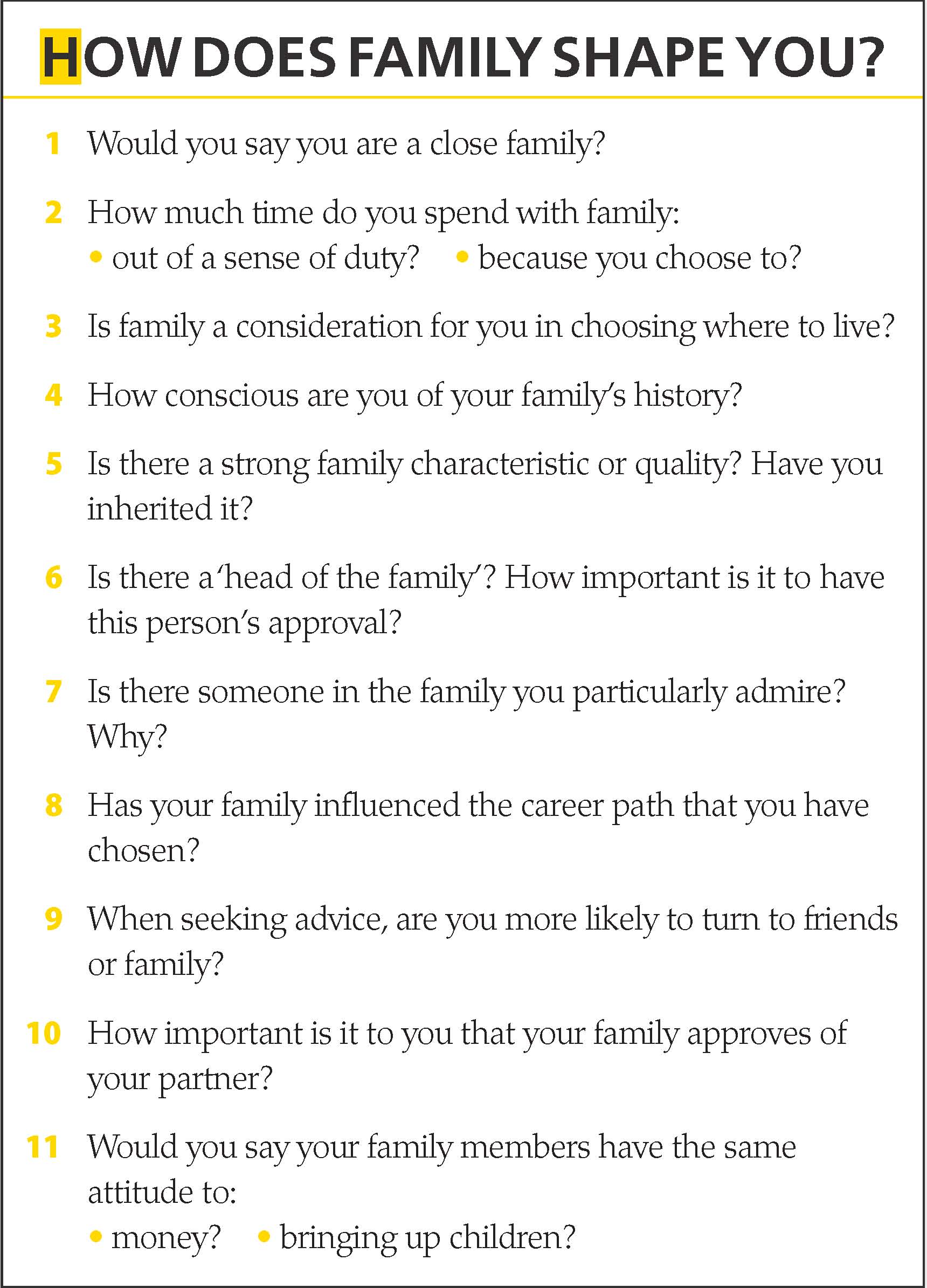 8 Look at the questionnaire and answer the questions. Then take turns to ask and answer the questions with your partner. Does family have a strong influence in your lives?