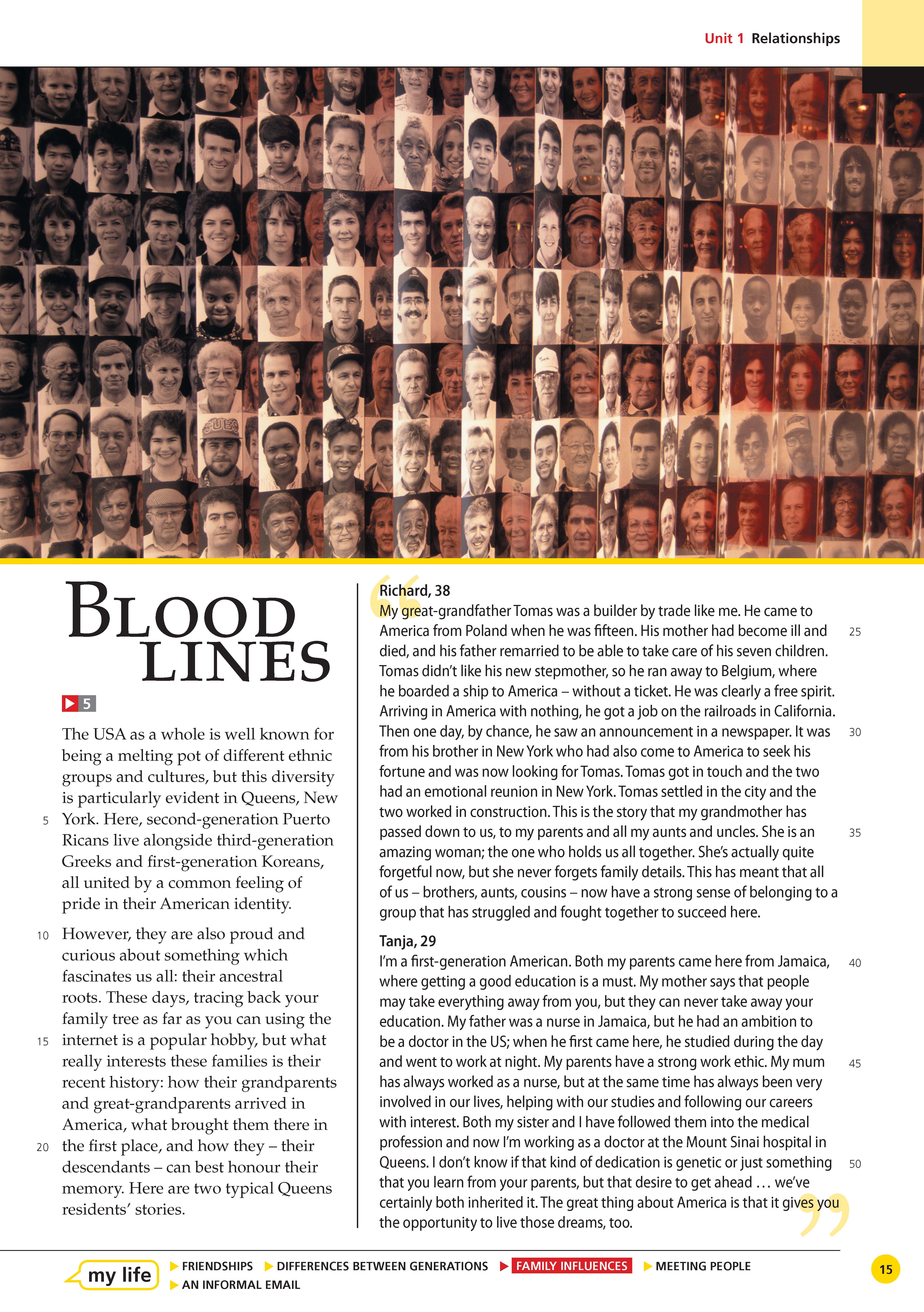 1 Immigrants in Queens, New York, feel attached to their new country. 2 Most people are interested in learning about recent rather than distant ancestors. 3 Tomas ran away from home even though he was happy there. 4 Tomas met his brother in New York one day by accident. 5 Tanja’s mother wasn’t able to balance work with looking after her children’s education. 6 Tanja and her sister have chosen to have similar careers to their parents.