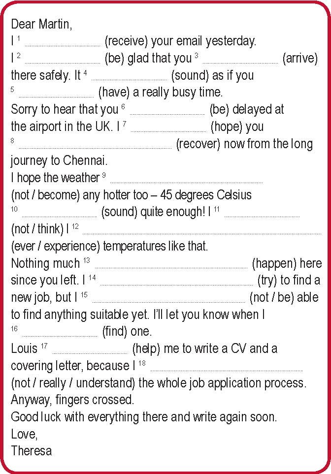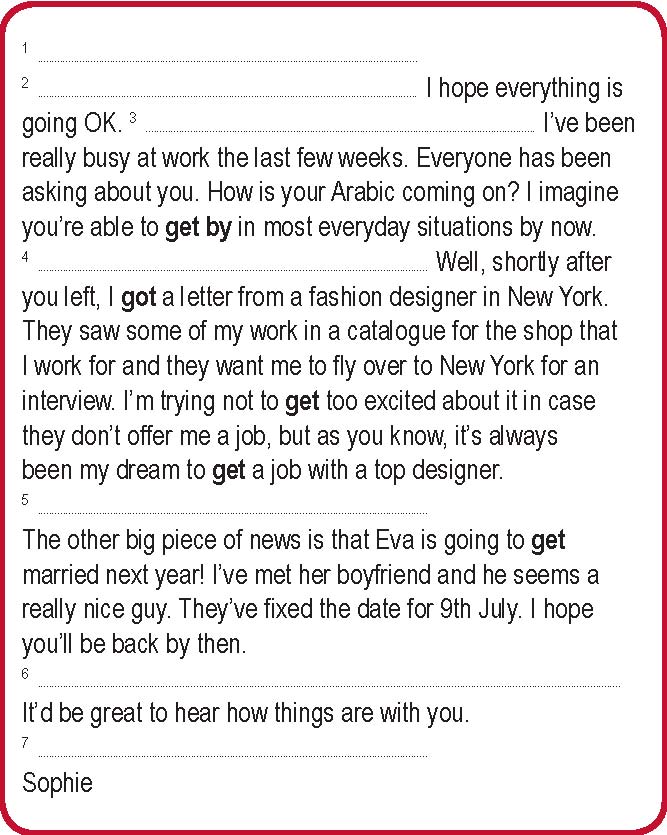 1 Complete the email to a friend who is working abroad. Use the sentences and phrases (a–g).