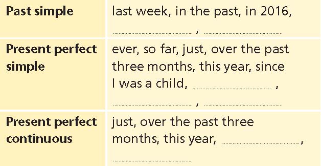 11 Look at the conversation in Exercise 10 again. Underline the time expressions that helped you to choose the right tense. Then complete the table with the expressions you underlined.